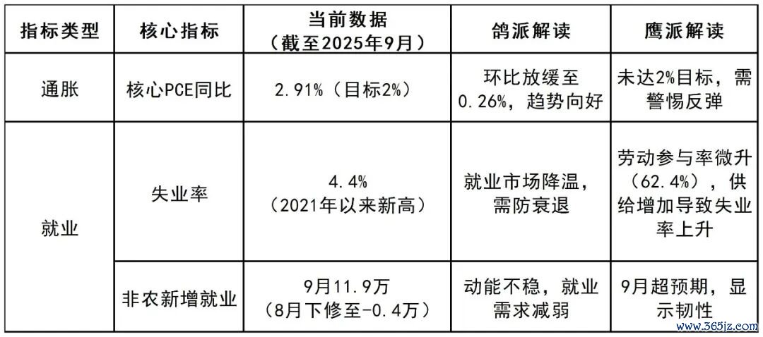 美联储制定货币政策有两个核心目标:物价稳定(通胀率2%)和充分就业,但宏观数据经常会出现矛盾益丰配资,这时候就要明确哪个指标更重要。具体数据解读和立场分歧看下面表格: