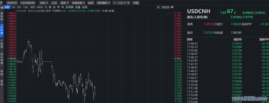11月26日,在前一天在岸、离岸同步升破7.09的背景下,人民币继续走强,截至当日下午18时(下同),在岸、离岸价盘中双双击穿7.08,其中在岸人民币最高达到7.0786,离岸达到7.07559。 同日,中国人民银行授权中国外汇交易中心公布,当日银行间外汇市场人民币兑美元中间价报7.0796,较上个交易日调高30个基点。今年以来,人民币中间价年内涨幅超过1000个基点。