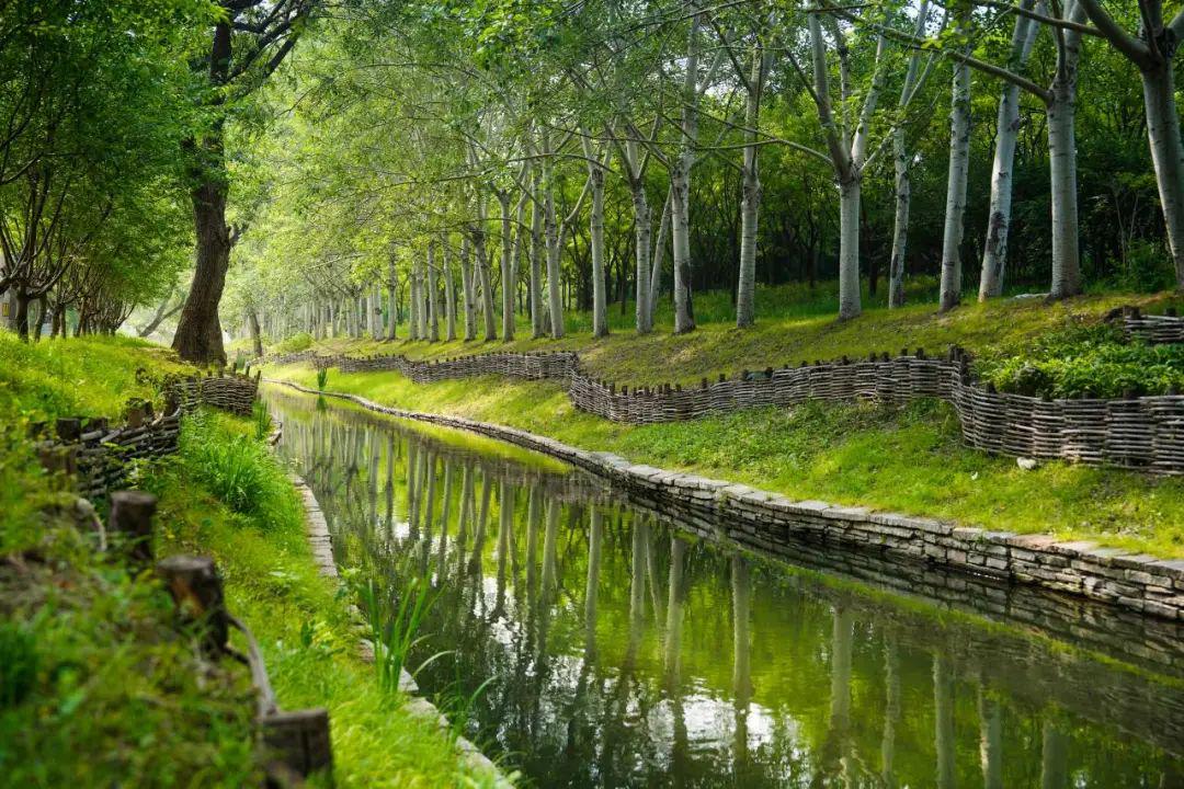 沿万安东路入口步入金河,改造后的河道展现出设计的巧思。岸边缓坡延伸入水,传统的竹条编织工艺与古朴的松木桩交错护岸,既保留了天然野趣,又确保了孩童嬉戏的安全边界。